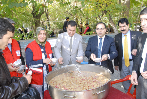 Aşurenin birlik ve beraberliğin simgesi olduğunu belirten Kızılay Şube Başkanı Süleyman Aslan, "Sevgi, saygı, birlik, beraberlik, barış ve kardeşliği ön plana çıkarak böyle güzel ve anlamlı bir atmosferde bir araya geldiğimiz için çok mutluyuz. Aşure: paylaşmanın, dayanışmanın, bir araya gelmenin, sevginin ifadesi, birlik ve beraberliğin simgesidir" şeklinde konuştu. Öte yandan Kızılay şubesi olarak ilçedeki ihtiyaç sahiplerine yönelik yürütülen çalışmaların devam ettiğini belirten Aslan, bu hafta içerisinde savaştan kaçarak ilçeye sığınan ihtiyaç sahibi ailelere, Kızılay'dan gönderilen 60 kavurma ile 20 gıda kolisi dağıttıklarını sözlerine ekledi.