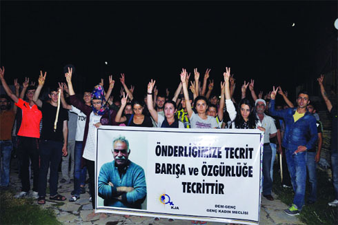 Ergani'de, Dem-Genç Kadın Meclisi ve KJA öncülüğünde PKK lideri Abdullah Öcalan'ın üzerindeki tecridin kaldırılması amacıyla meşaleli yürüyüş gerçekleştirildi. Yürüyüşe yüzlerce yurttaşın yanı sıra Ergani Belediye Eş Başkanı Ramazan Kartalmış, HDP, DBP ve ESP yöneticileri katıldı. HDP ilçe binası önünden "Önderliğimize Tecrit Barışa ve Özgürlüğe Tecrittir" pankartı açan kitle ellerinde meşalelerle sık sık "Biji Serok Apo", "Öcalan'a Özgürlük", "Be Serok Jıyan Nabe" sloganları attı. Sakine Cansız Parkı'nda son bulan yürüyüşün ardından kitle burada basın açıklamasında bulundu. Demokrasi mücadelesinde yaşamını yitirenleri anma adına yapılan saygı duruşunun ardından gerçekleşen açıklamada basın metnini Dem-Genç üyesi Sevda Kaya okudu. Sevda Kaya; "Bilindiği gibi 5 Nisandan bu yana önderlik ile görüşme yapılmamaktadır. Çözüm sürecinin baş müzakerecisi olan Önder Apo ile görüşmelerin olmaması çözüm sürecini bir bütünen devlet eliyle boşa çıkarmadır. Fakat biz Genç kadınlar olarak Önderliğimize yönelik bu tür yaklaşımları kesinlikle kabul etmeyecek ve bunun takipçileri ve mücadelecileri olacağız" dedi.